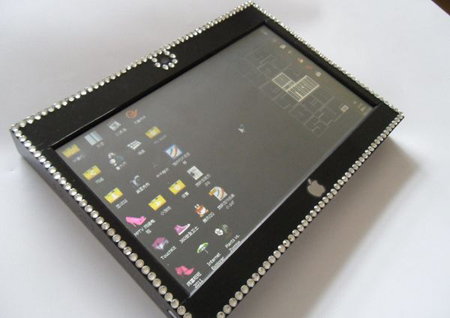 El joven no dejó librado al azar ningún detalle y la tablet casera también cuenta con el logo de la manzanita de la firma de Steve Jobs. Y fue decorada con unas imitaciones de piedras preciosas.